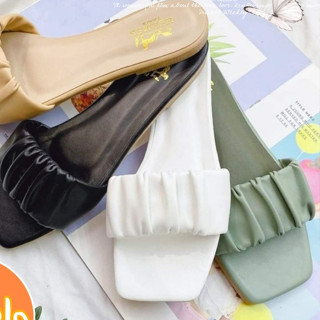 [HOT] Dép lê nữ bệt quai ngang nhún nhúm dúm nhăn bèo mũi vuông đi biển mùa hè đẹp trend mẫu mới màu xanh/vàng/đen 012