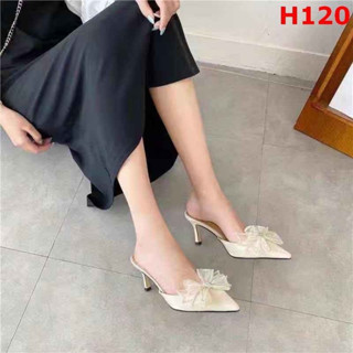 Dép Sục cao gót Nơ đá cánh tiên mũi nhọn gót nhọn 7p sang chân mã 018
