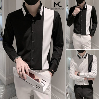 Áo sơ mi SANMINHCHAU áo sơ mi nam chất lụa hàn dáng bassic phối màu đen trắng thời thượng hottrend 2023 ASM501