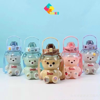 Bình nước hình gấu cho bé 1l siêu dễ thương kèm ống hút, tặng kèm ticker