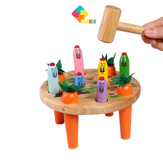 Đồ chơi gỗ xe chó kéo đập bóng thả hình khối