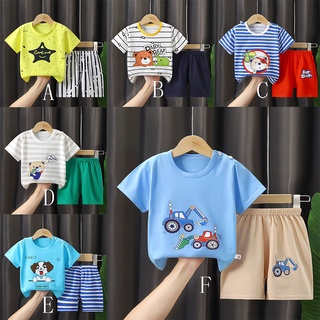 Bộ Đồ 2 Món 100% Cotton Gồm Áo Thun Tay Ngắn Và Quần Ngắn In Họa Tiết Động Vật Hoạt Hình Cho Bé Trai 1-7 Tuổi