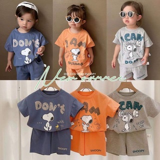 SANITKUN Bộ quần áo ngắn tay thoáng khí họa tiết hoạt hình phong cách Hàn Quốc dành cho trẻ em