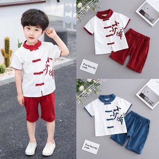 SANITKUN Set trang phục áo tay ngắn và quần short phong cách Trung Hoa mừng năm mới xinh xắn dành cho trẻ em