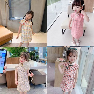 SANITKUN Đầm sườn xám phong cách Trung Hoa nhiều màu sắc tùy chọn xinh xắn dành cho bé gái