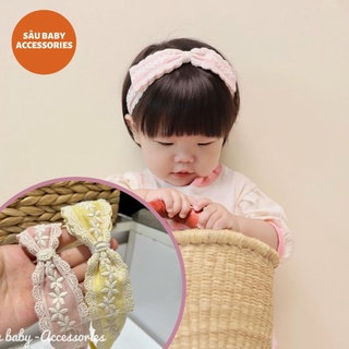 Băng đô turban vải ren Hàn Quốc handmade cao cấp cho bé