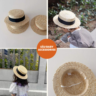 Mũ rơm vành màu có quai đeo giữ mũ siêu tiện lợi phong cách Hàn Quốc cho bé