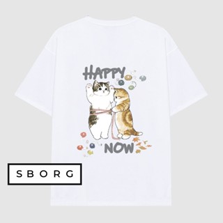 Áo thun cotton HAPPY NOW tee basic co giãn mát cổ tròn tay lỡ in hình cute form rộng 55-85kg tshirt unisex nam nữ SBORG