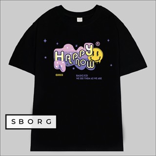 Áo thun unisex nam nữ HAPPY NOW tee basic cotton tici thoáng mát tshirt cổ tròn in chữ tay lỡ form rộng 55-85kg SBORG