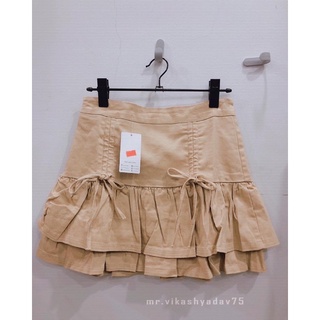 Chân váy kaki / jeans xếp li tầng buộc nơ Quảng châu (Ảnh thật)