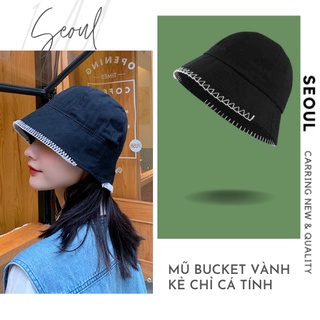 Mũ vành tròn viền thêu chỉ cá tính, nón vành tròn chống nắng cá tính 2022