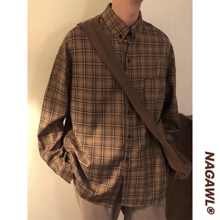 Áo Sơ Mi Nam Tay Dài Dáng Rộng Họa Tiết Caro Thời Trang Phong Cách Hàn Quốc
