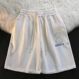Quần Thể Thao Ngắn Dáng Rộng Màu Trơn Có Dây Rút In Họa Tiết Phong Cách Hàn Quốc Thời Trang Unisex