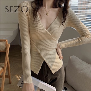 QKOOLE Áo dệt kim cổ chữ V dáng ôm thời trang Hàn gợi cảm cho nữ