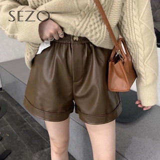QKOOLE Quần short da PU mỏng lưng cao màu trơn phong cách Hàn Quốc cá tính cho nữ