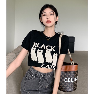 QKOOLE Áo Thun Lửng Ngắn Tay Hở Vai In Chữ Thời Trang Cho Nữ