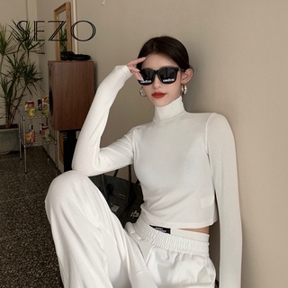 QKOOLE Áo thun tay dài cổ cao có khóa kéo thời trang Hàn Quốc trẻ trung dành cho nữ