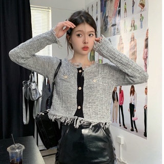 QKOOLE Áo Khoác cardigan Dệt Kim Tay Dài Phong Cách Hàn Quốc croptop