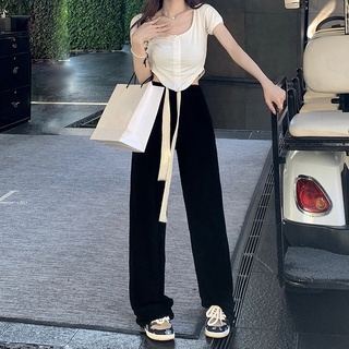 QKOOLE Áo Croptop Tay Ngắn Dáng Rộng Hở Rốn Phối Dây Rút Phong Cách Hàn Quốc Thời Trang Mùa Hè Dành Cho Bạn Nữ
