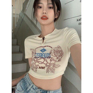 QKOOLE Áo Thun Croptop Tay Ngắn Cổ Tròn Dáng Ôm In Chữ Đính Đá Thời Trang Mùa Hè Cho Bạn Gái