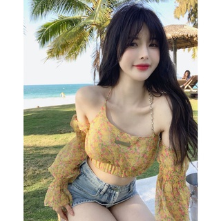 QKOOLE Áo trễ vai hoạ tiết hoa phong cách Hàn Quốc cho nữ