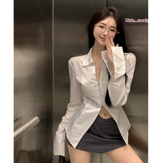 QKOOLE Áo sơ mi nữ tay dài dáng rộng hở lưng phong cách Hàn Quốc thời trang