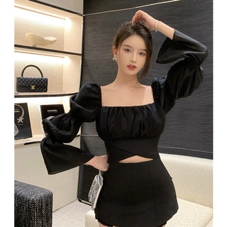 QKOOLE Bộ Áo Sơ Mi Tay Dài Trễ Vai + Đầm Sát Nách Dáng Ôm Thời Trang Mùa Hè Phong Cách Hàn Quốc Cho Nữ