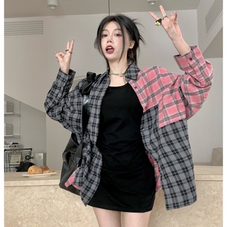 QKOOLE Áo Sơ Mi Dài Tay Dáng Rộng Thiết Kế Bất Đối Xứng Màu Xám Thời Trang Hàn Quốc Cho Nữ