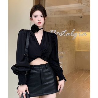 QKOOLE Áo Thun Nữ Dài Tay Cổ Chữ V Vạt Chéo Thời Trang