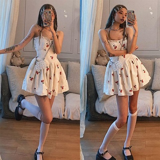 Đầm Hai Dây Dáng Phồng Họa Tiết Quả Cherry Thời Trang Mùa Hè Hàng Mới 2022