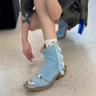 Giày Bốt Cao Bồi Mũi Vuông Phong Cách Âu Mỹ Thời Trang Mới 2022