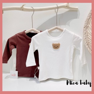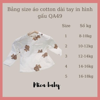 Áo phông, áo thun dài tay thu đông đính gấu chất liệu vải cotton xước đáng yêu cho bé từ 8- 18kg QA47 Mica Baby