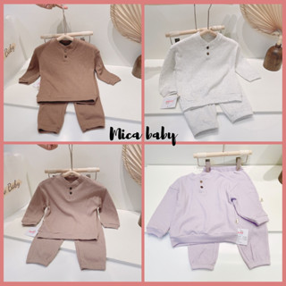 Bộ quần áo bao lỗ bé trai bé gái, bộ cộc tay tăm lạnh màu trơn mặc hè cho bé QA79 Mica baby