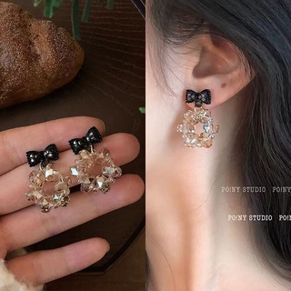 Khuyên tai đính đá zircon phối nơ phong cách thời trang 2021