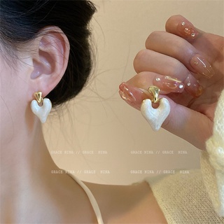 Bông Tai Mạ Bạc 925 Hình Trái Tim Màu Trắng Phong Cách Pháp Cổ Điển Thời Trang Cho Nữ