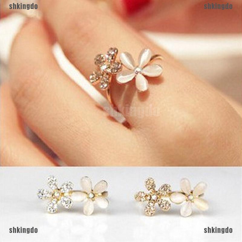 Nhẫn mạ vàng hình hoa cúc đính pha lê thanh lịch