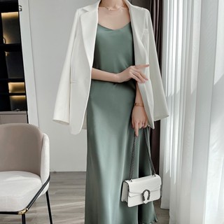 Đầm Ôm Hai Dây Xẻ Tà Ngực Thấp Màu Sắc Đơn Giản Dành Cho Nữ
