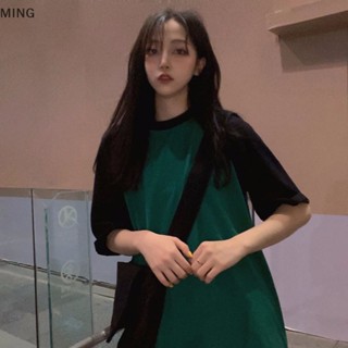Áo Thun Tay Ngắn Cổ Tròn Dáng Rộng Màu Sắc Tương Phản Thời Trang Mùa Hè Dành Cho Nữ