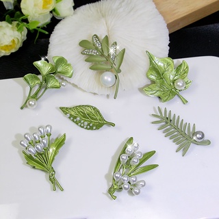 Ghim Cài Áo Hình Lá Đính Đá Và Ngọc Trai Nhân Tạo Thời Trang