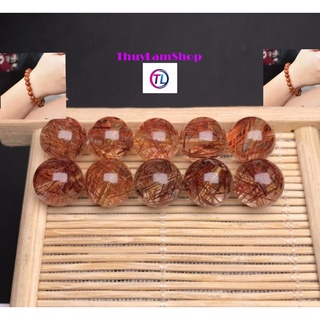 Hạt đá(TA) tóc đỏ ánh kim 8li làm mặt nhẫn mặt dây chuyền xâu vòng tay
