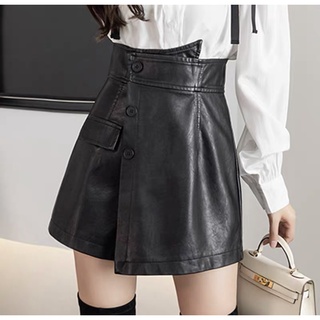 Chấn Váy Da Cao Cấp Chữ A Vạt Lệch Cúc Chéo Dáng Ngắn Công Sở Ôm Body Hàn Quốc