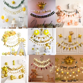 (Tặng Dây Đèn Led Lung Linh) Set Bóng Bay Trang Trí Sinh Nhật Tại Nhà - Tông Màu Vàng Sang Trọng