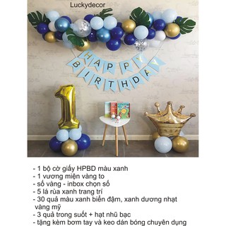 Set bóng trang trí sinh nhật tone xanh cho bé trai dễ làm - TẶNG kèm phụ kiện