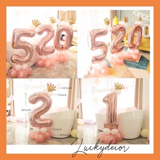 Bóng số màu hồng gold 32inch + Tặng Kèm Vương Miện Và Bóng Tròn MM98