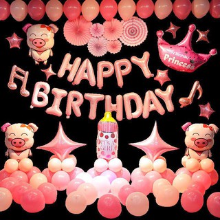 Bộ Bóng Trang Trí Sinh Nhật Heo Hồng ( tặng kèm bơm tay , băng dính)
