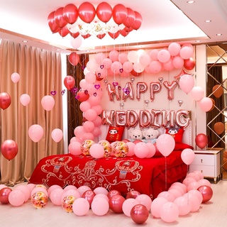 {Tặng cánh hoa đỏ} Set bóng bay trang trí phòng cưới đủ phụ kiện màu hồng MK09