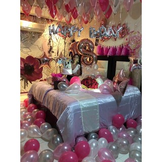 (Tặng Dây Đèn 5m) Set Bóng Trang Trí Sinh Nhật Tại Nhà Màu Hồng Đơn Giản Dễ Làm HT01