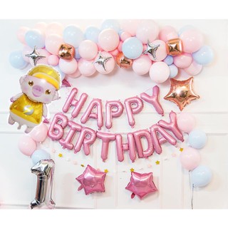 Bộ Bóng Trang Trí Sinh Nhật/ Happy Birthday Tông Hồng MS001