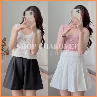 Áo len ba lỗ dáng Croptop tiểu thư A8402 Áo 2 dây bản to dệt kim thêu họa tiết hoa xinh xắn thời trang Hàn Quốc cực HOT