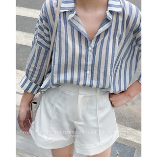 Áo sơ mi kẻ sọc nữ cộc tay A8215 Kiểu bèo vai buộc nơ cổ cá tính mix được nhiều đồ phù hợp mặc đi làm đi học
